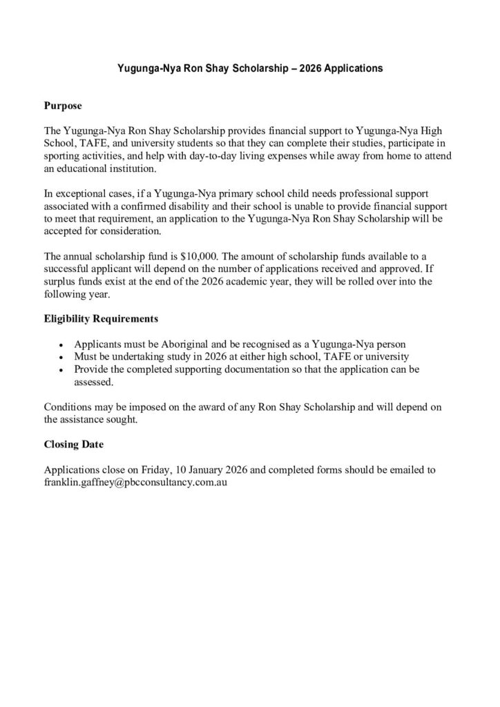 Yugunga-Nya Ron Shay Scholarship Application Form