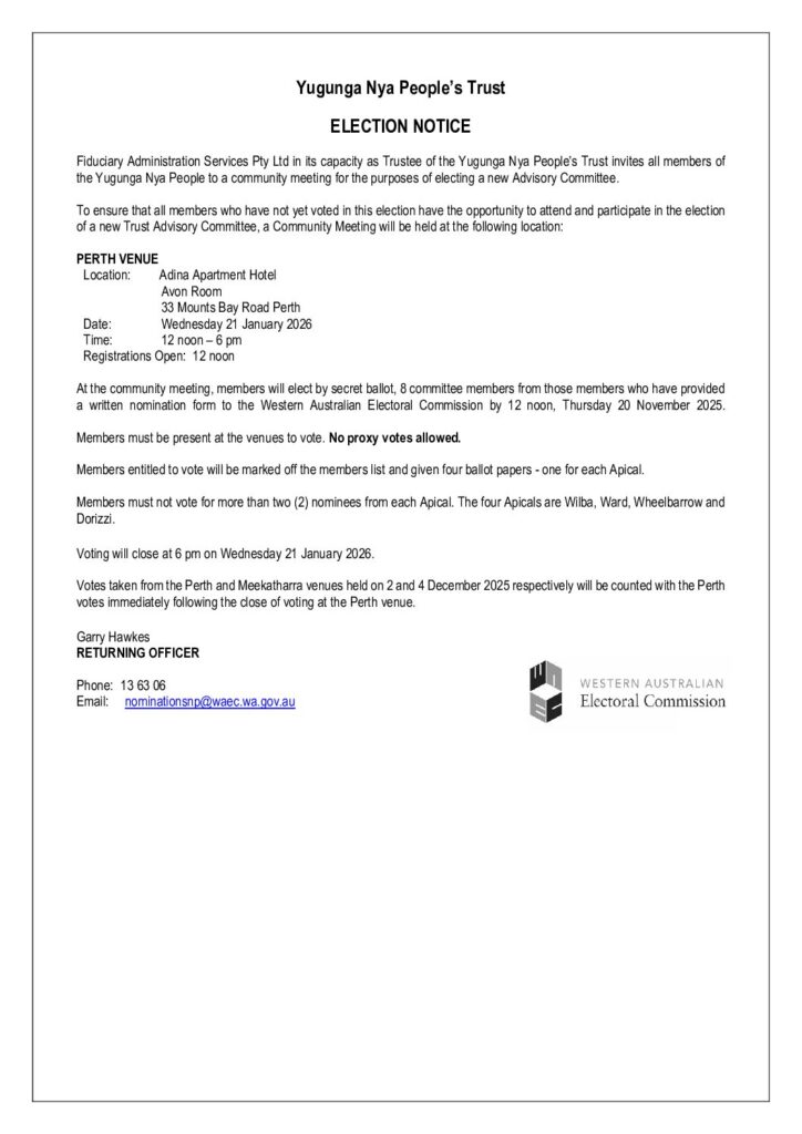 Election Notice – Perth Meeting Adina Hotel